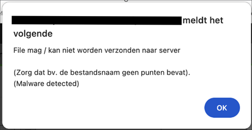 Wanneer je een document uploadt, zal de malware scanner automatisch het document scannen op virussen; iprox.cms zal een melding geven wanneer er malware is gedetecteerd.